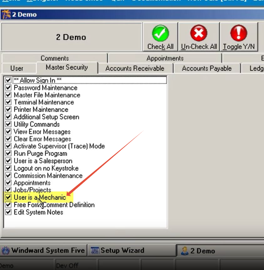 How to Configure Basic Windward System Five User Settings for a Mechanic