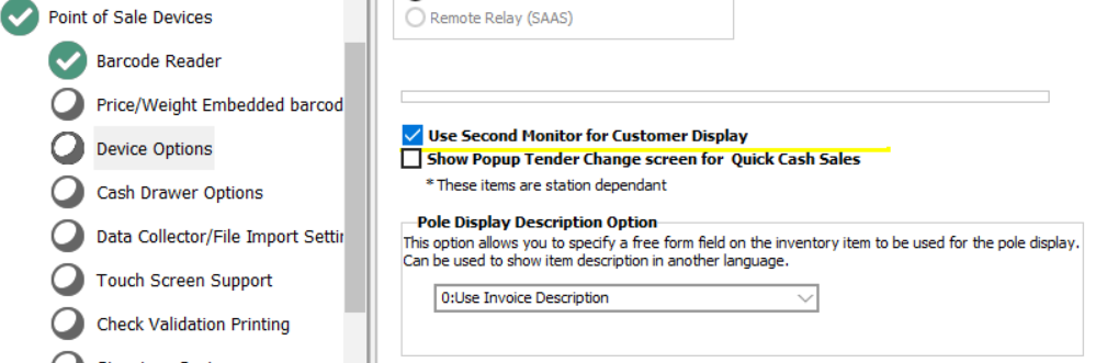 4. Check the option "Use Second Monitor for Customer Display."